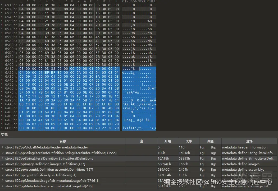 值得注意的是,随着技术的发展,各大厂商对global-metadata.dat文件的加密手段层出不穷,但无论如何加密,这些数据最终都会在运行时被解密并使用。因此,利用Hook等动态分析手段是获取解密后数据的有效方法。