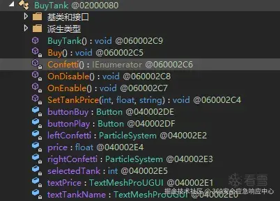 游戏可以通过购买坦克来增加自己的实力,那么我们就从白嫖他的坦克开始分析这个程序,首先还是用Dnspy或者使用ILspy去解析这个Assembly-Csharp.dll获取方法的参数和偏移。