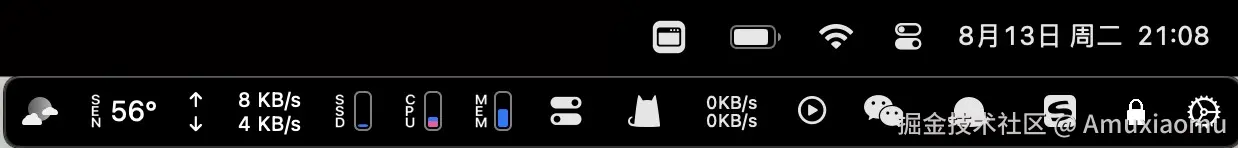 下载了iBar... 将其余的内容全部收到一起,状态栏清爽多了