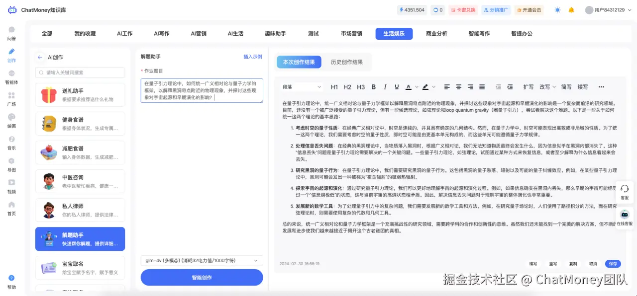 ChatMoneyAI解题助手,以其即时响应、精准解答的能力,让难题迎刃而解。无论面对的是复杂的数学公式,还是深奥的科学理论,它都能迅速提供答案,并附上详尽的解题步骤,让学习变得更加高效和透彻。同时,其广泛的适用范围,覆盖了多个学科领域,满足不同学习者的多样化需求。