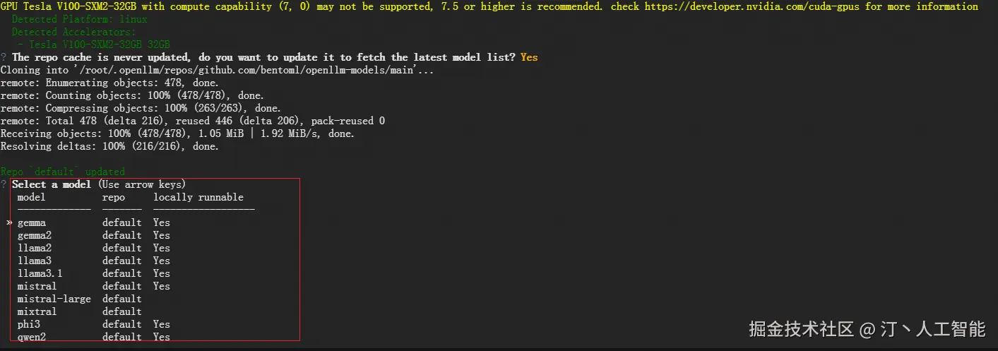 使用 openllm models 命令查看 OpenLLM 支持的模型及其变体列表。