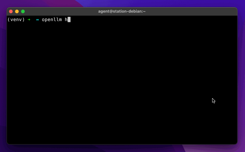 OpenLLM 提供了一个内置的 Python 客户端,允许您与模型进行交互。在不同的终端窗口或 Jupyter notebook 中,创建一个客户端以开始与模型交互: