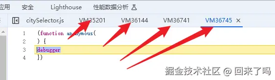 欸,怎么不管用呀,怎么弹出了这么多debugger,仔细一看,哦VM,那估计是在eval中执行的代码: