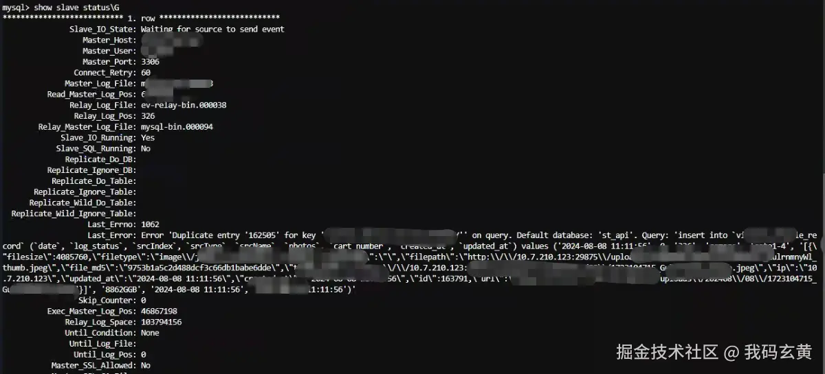 特别是 Last_Error 字段信息,如果上述步骤都无法解决问题,可以 Last_Error 的信息进行排查。