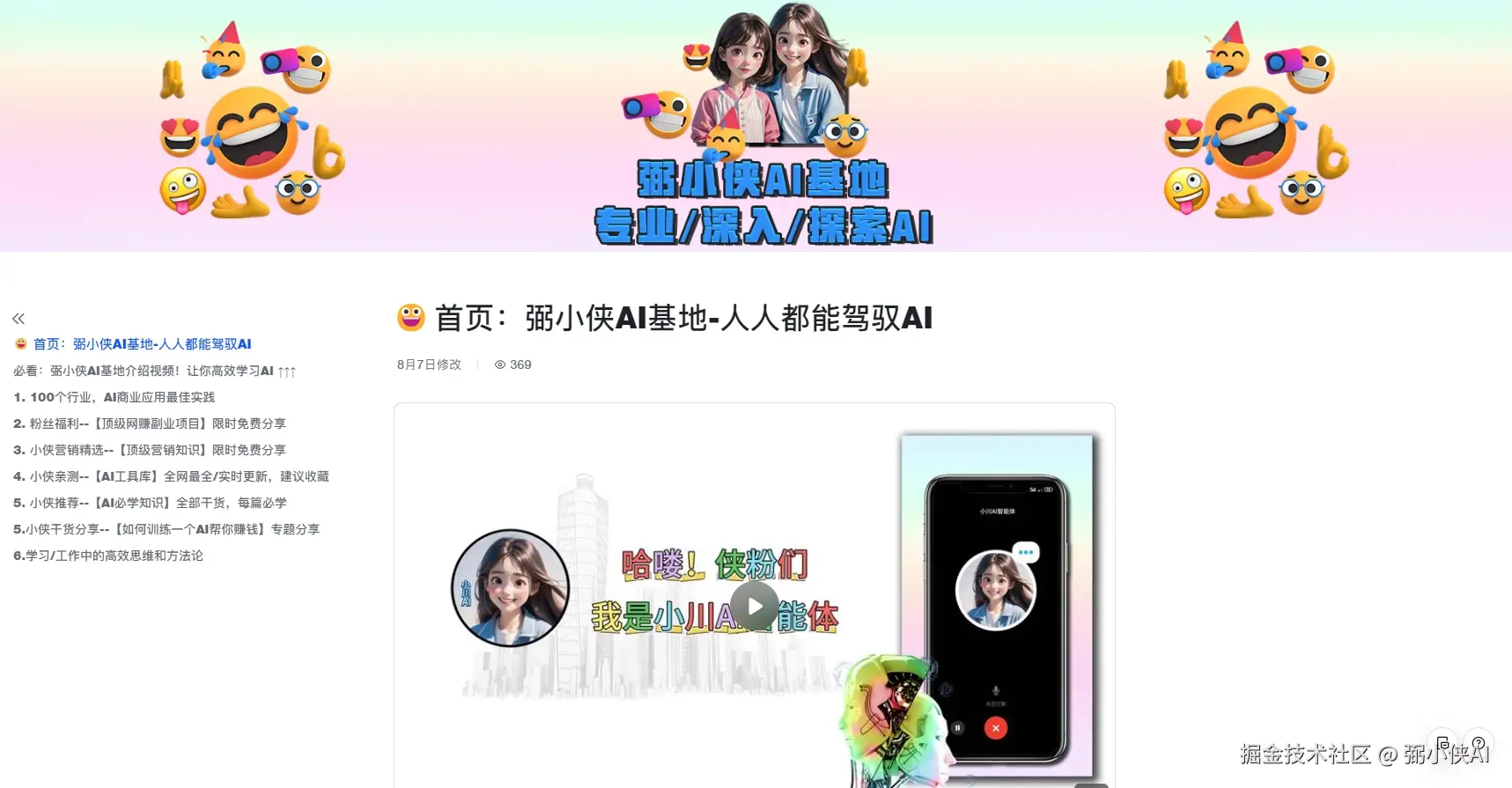 同时,你也可以加入【弼小侠AI基地】学习更多AI知识,特别是如何利用AI去赚钱的话题,小侠都整理到AI基地中去了。