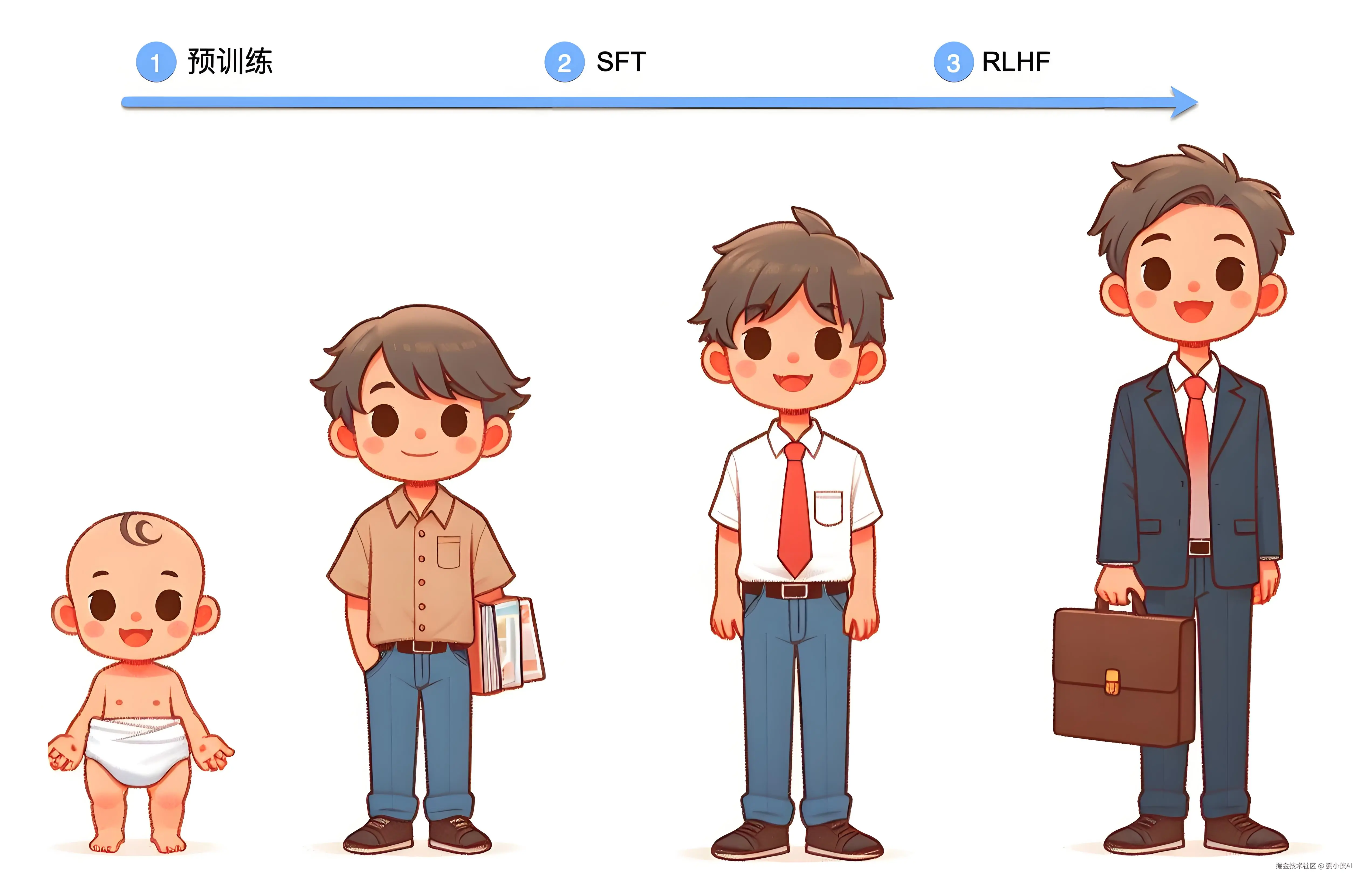 预训练阶段类似AI从婴儿成长为中学生的阶段。