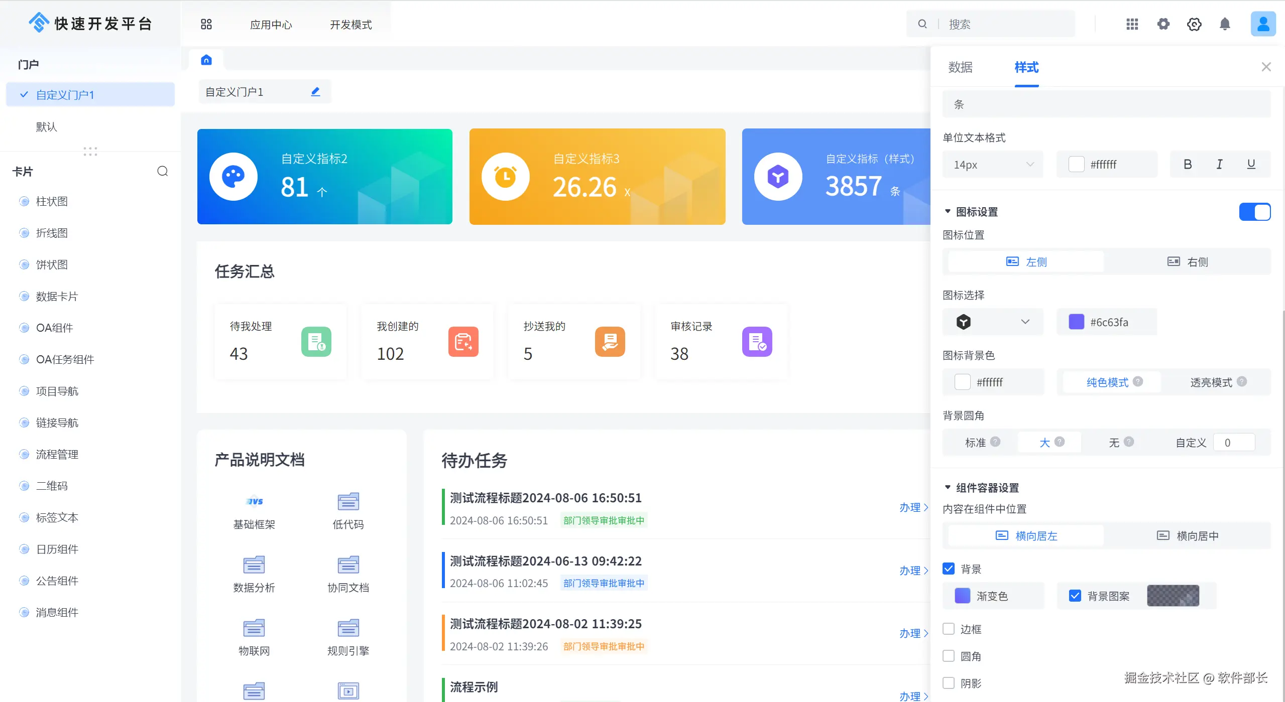 1、优化低代码中的门户引擎,对应的组件优化了对应配置能力;
