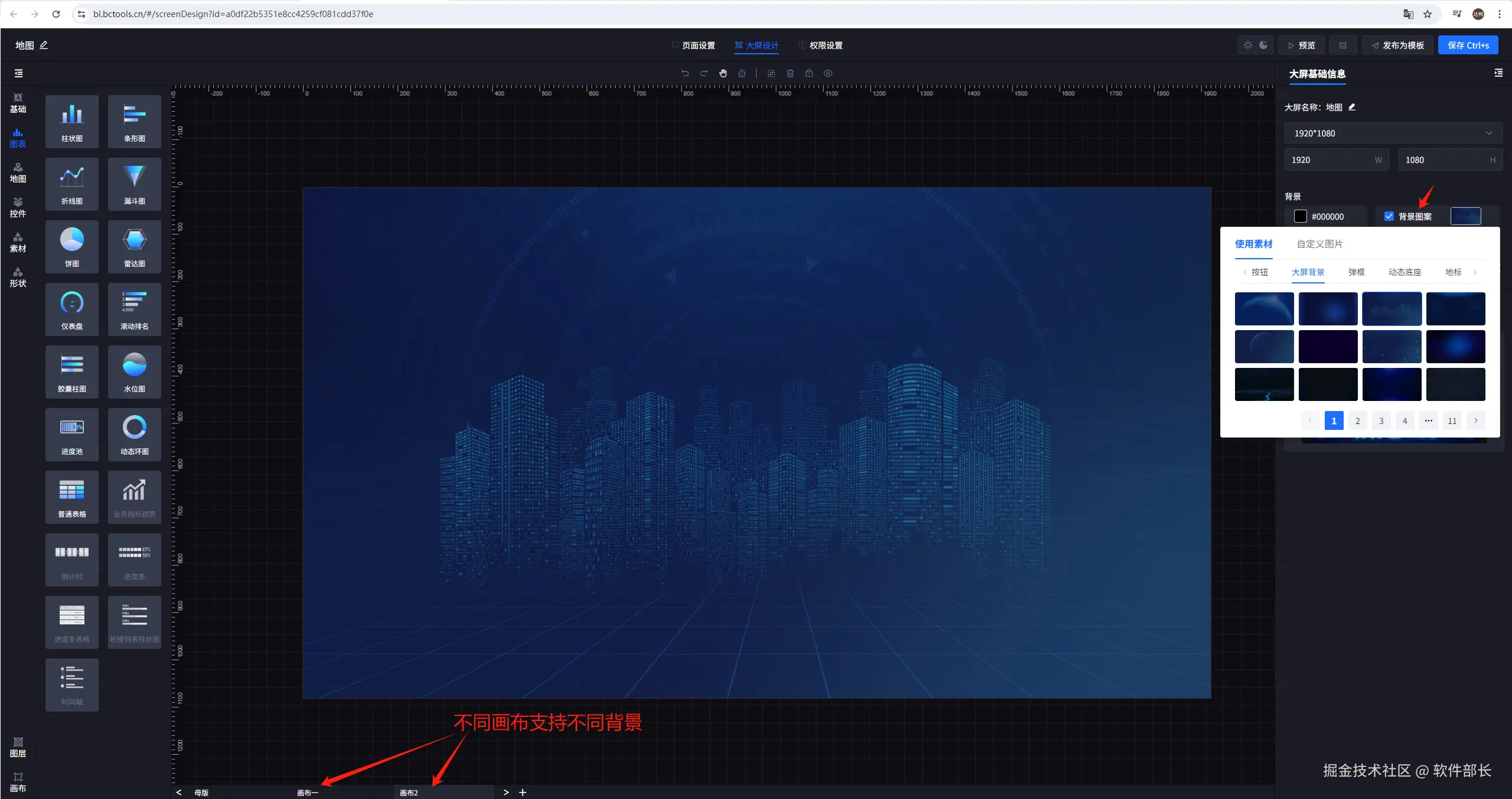 1、大屏优化背景选择方式,采用统一的图片选择器,并且支持不同画布设置不同的背景图片;
