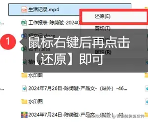 第2步: 选择需要恢复的文件,选中后鼠标右键,选择【还原】即可。