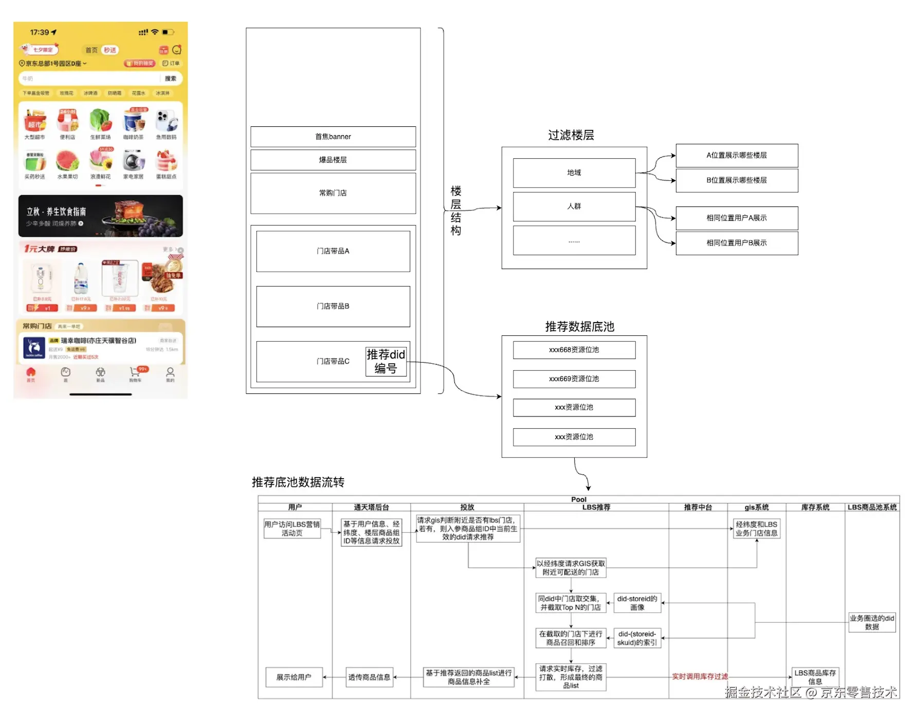 在整理推荐系统的数据链路时,我们注意到推荐结果中的门店商品资源高度依赖GIS系统。深入分析GIS逻辑后,了解到GIS维护着不同覆盖范围的网格围栏,如3公里、5公里和20公里网格,并且每个网格下的门店商品资源是相同的。这启发了我们,如果我们也能构建一个类似GIS的网格系统并缓存门店商品,岂不是能显著提升数据的一致性?然而,现实告诉我们,推荐系统调用GIS接口是基于策略模型的选择,并非易事。若要完整复制推荐系统逻辑几乎不可能。