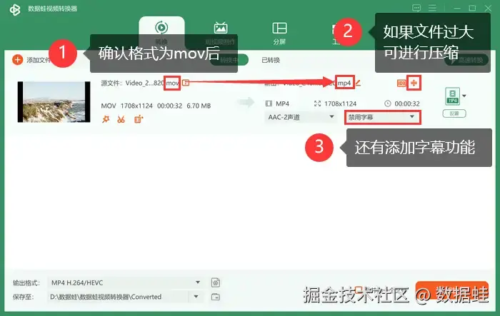 软件版本:数据 蛙视频转换器1.0.10