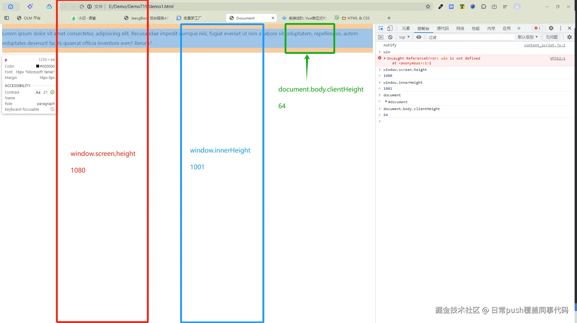 - document.body.clientHeight:body高度