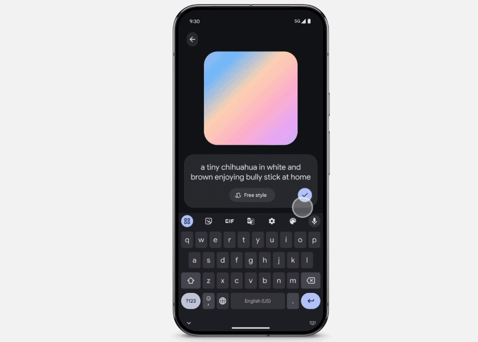 其中,Pixel Studio 可以帮助你在手机上就能将想法转化为图像。它由运行在 Tensor G4 上的设备端扩散模型和云端的 Imagen 3 文本到图像模型相结合而成。