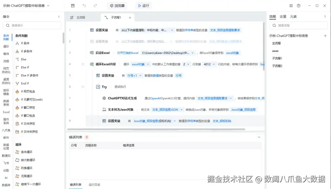八爪鱼RPA应用界面-ChatGPT提取中标信息