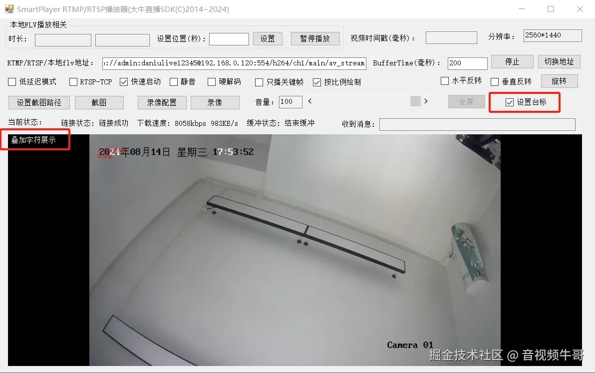 以大牛直播SDK的C#的RTSP|RTMP播放demo为例,分享下设计实现流程。选中**“设置台标”**复选框,在player窗口左上角显示“叠加字符展示”,具体内容、坐标可自定义,如果需要关闭台标,可以随时关闭: