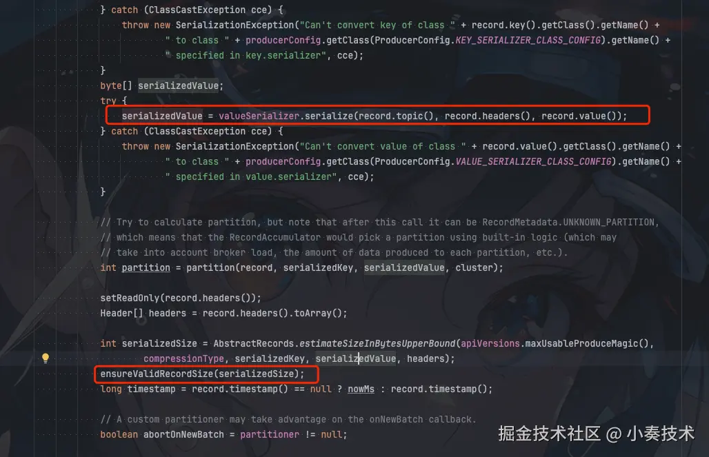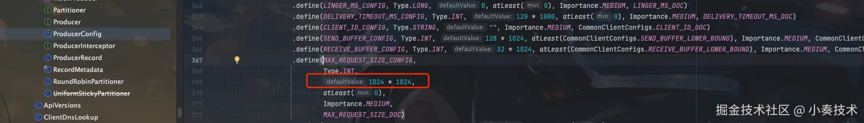 值得注意的是max.request.size相对broker而言是对单条消息大小进行限制,我们结合源码可以看到