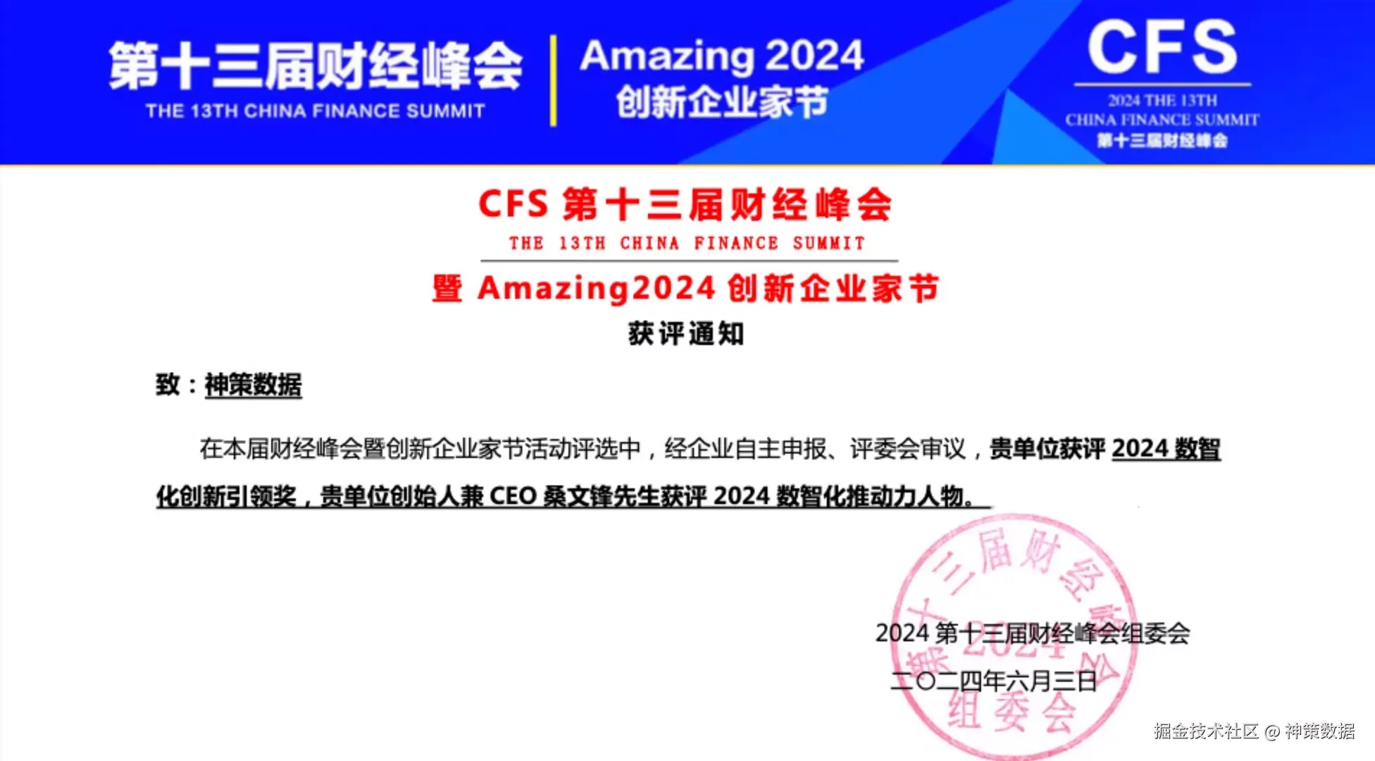 近日,以“寻找中国经济新动力”为主题的第十三届财经峰会暨 Amazing 2024 创新企业家节在北京举办。神策数据作为行业发展趋势的典型代表,荣获 CFS 第十三届财经峰会 2024 数智化创新引领奖。神策数据创始人 & CEO 桑文锋也因其在推动行业数智化转型中的卓越贡献,获评 2024 数智化推动力人物。