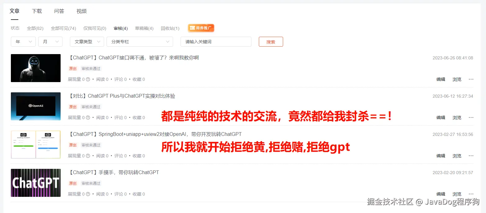 狗哥在翻阅之前写的文章时,发现很多对接gpt的实操项目文章都被和谐了,而且老美还限制我们爱国青年使用gpt