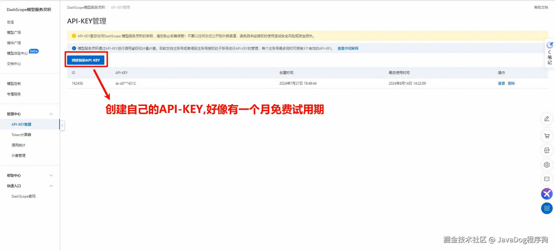 申请调用Spring Cloud Alibaba AI的API-KEY