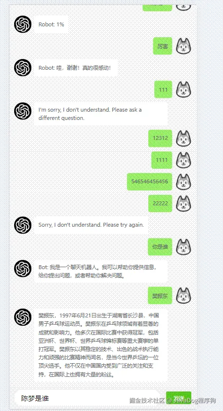 最终,本狗展示了如何成功地实现了一个具备基本聊天功能的 AI 应用。