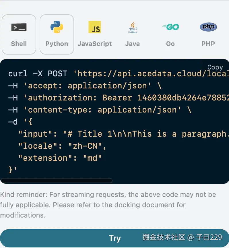 Localization Translate API 的主要功能是通过输入需要翻译的文本来获取翻译后的文本,同时翻译后的语言可以自定义,并且翻译结果可以采用 json , markdown 俩种主流的方法来输出。