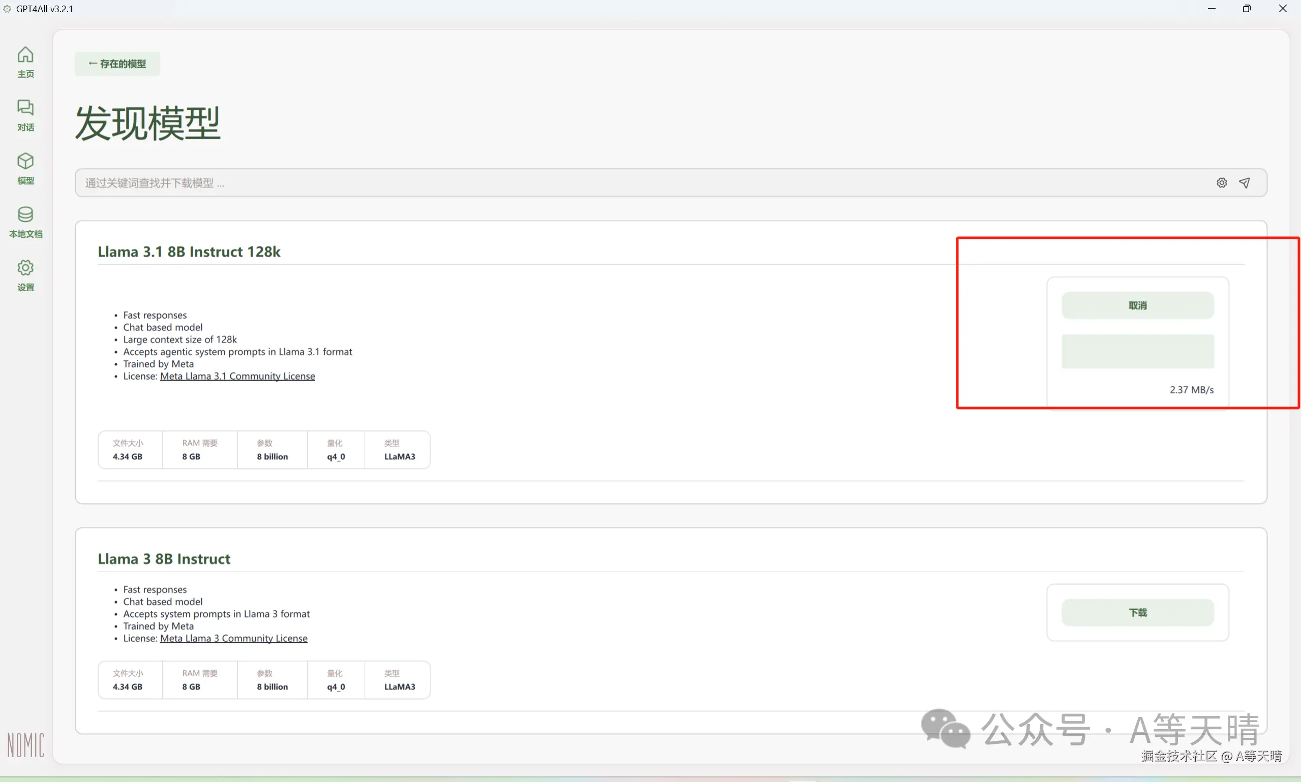 这个程序有着可视化的界面,然后模型也是和ollama的官网一样,不过这里可以自行搜索下载