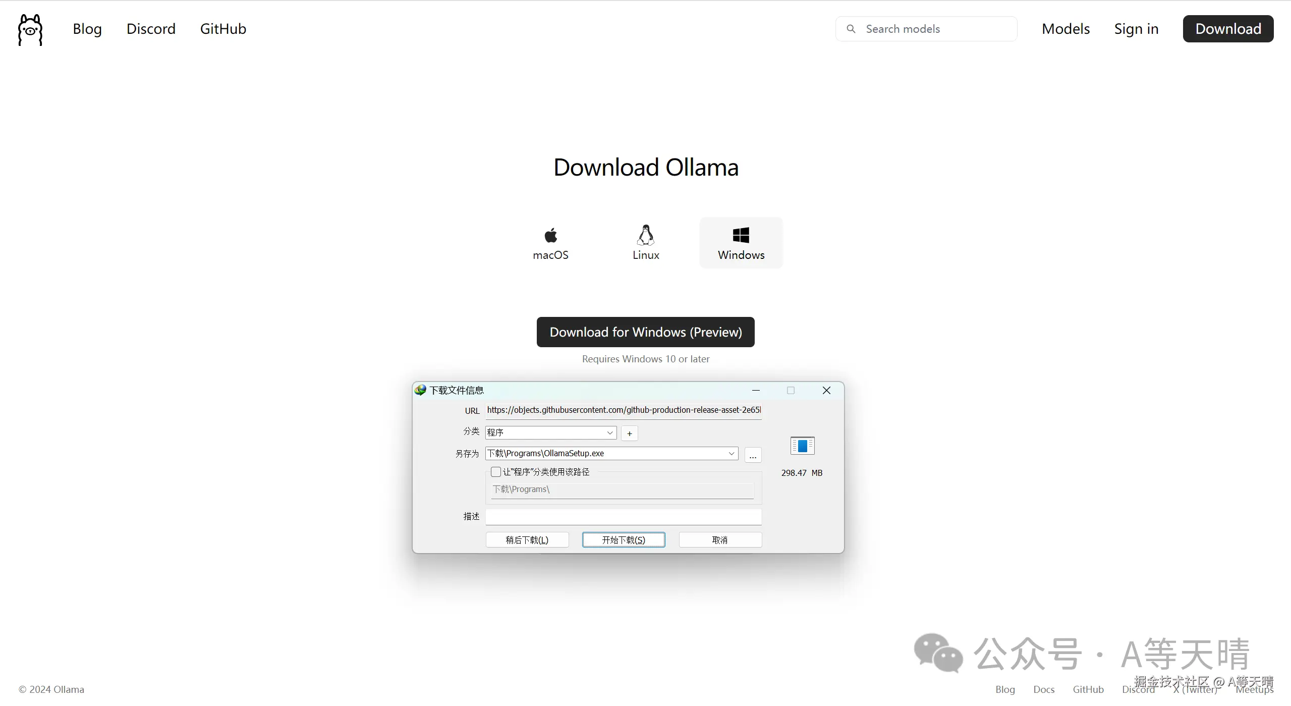 然后用到现在非常火的ollama这个开源项目,项目地址是