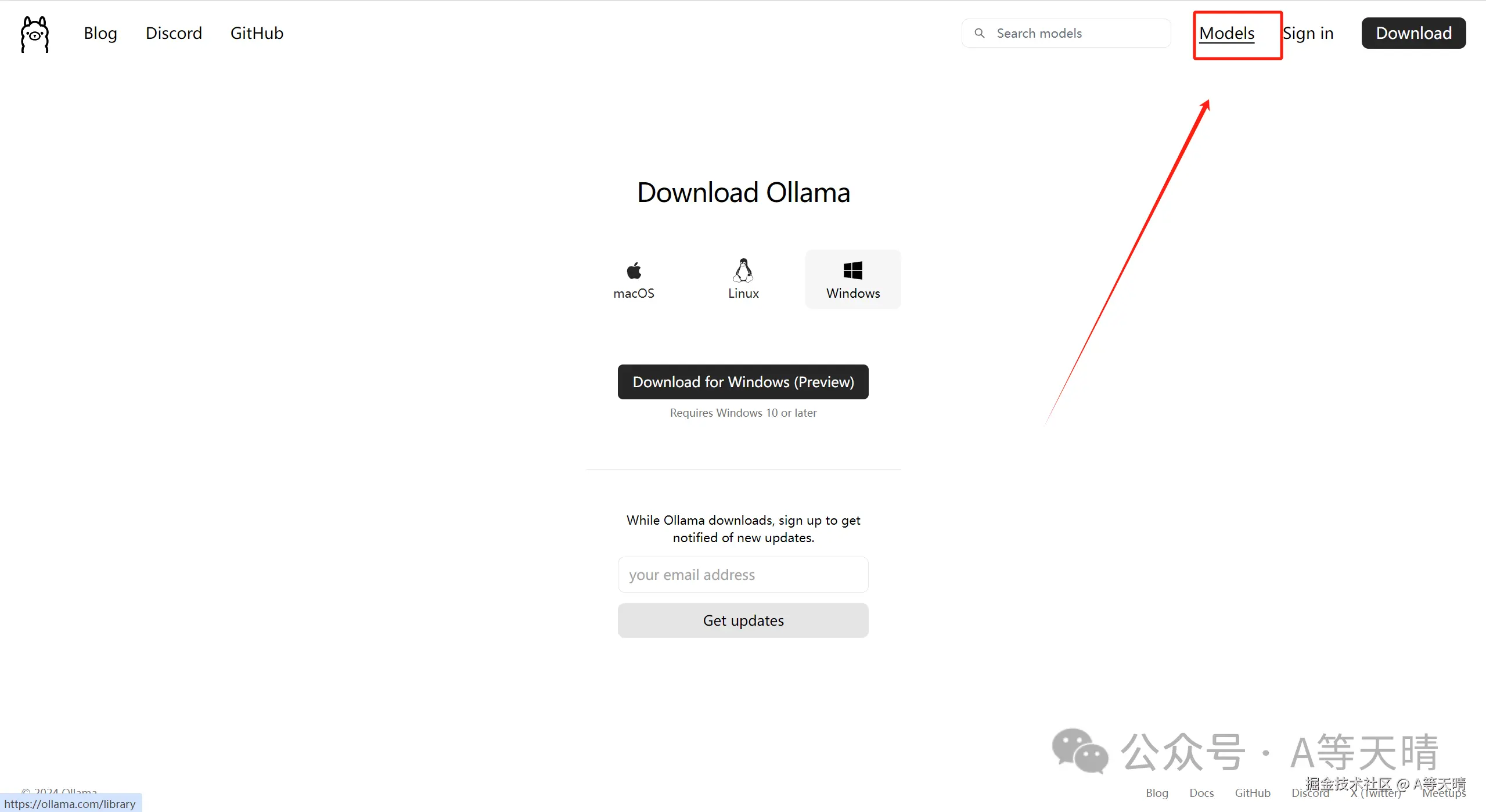 所以当你要选择模型下载的时候可以回到ollama的官网右上角处有模型的选项,点击后就可以选择开源的模型