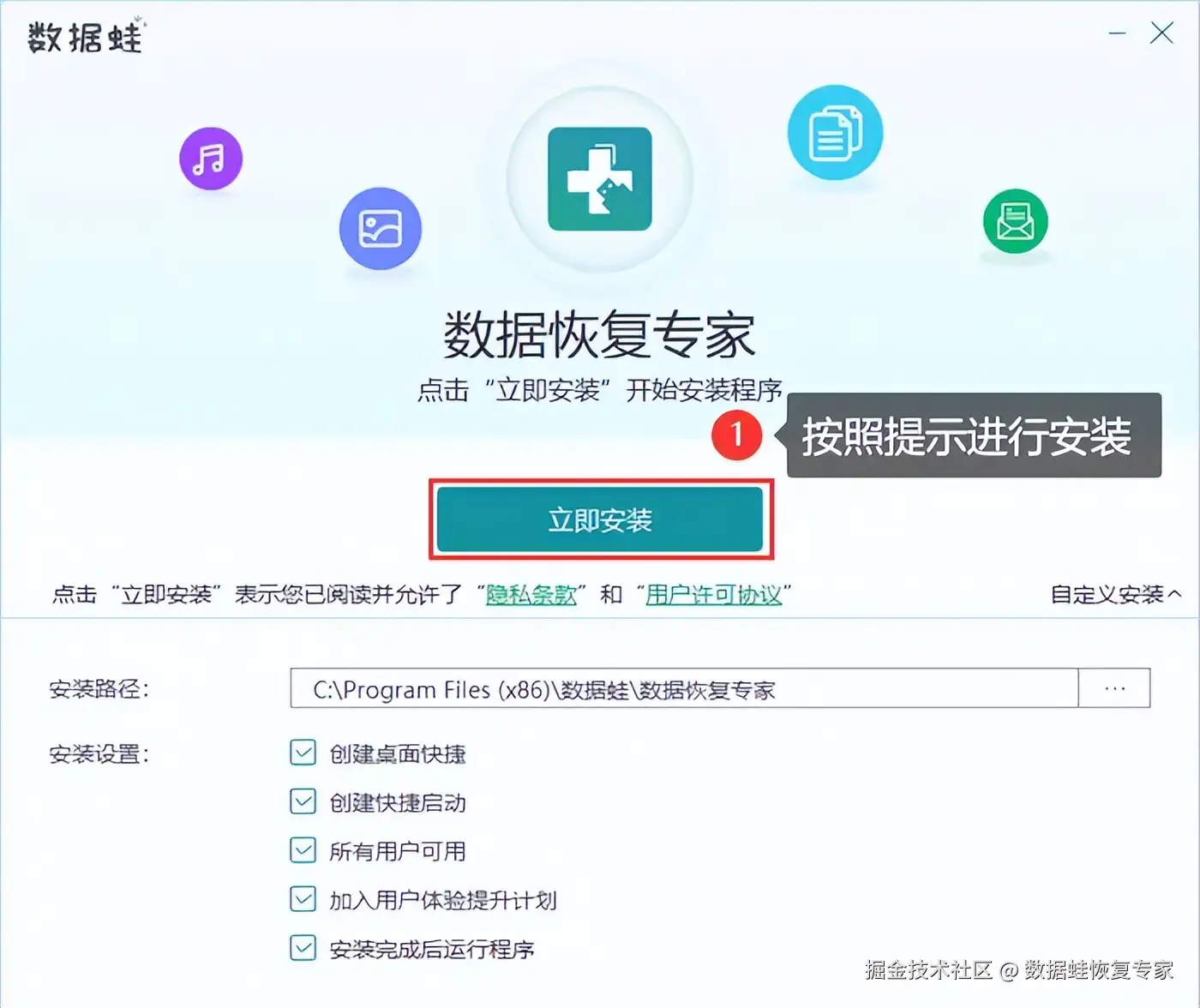 步骤1:前往官方网站下载数据恢复专家的安装包,并根据提示完成安装过程。
