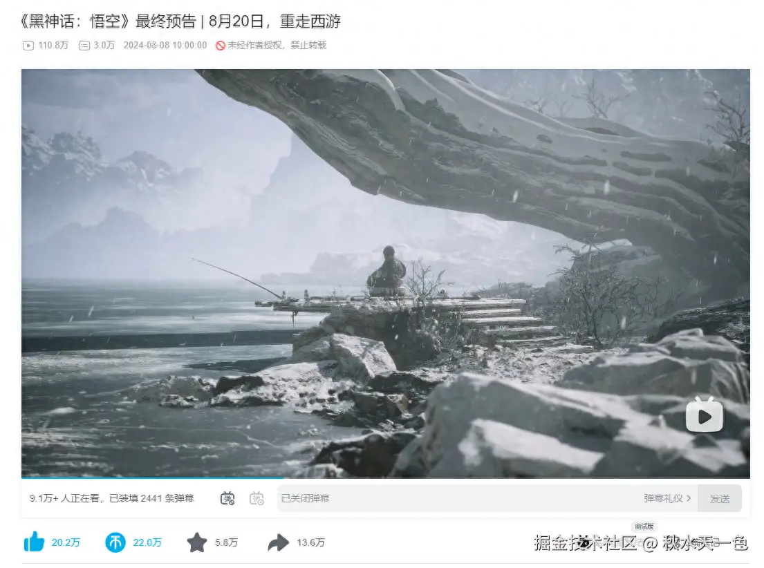 8月8日,黑神话悟空公布了最后上线前的宣传PV,在B站上该视频不到1小时就收获百万播放,点赞和投币数量都超过20万。相信8月20日以后,中国游戏的全球化竞争中,PC&主机游戏会是最强的增量引擎。