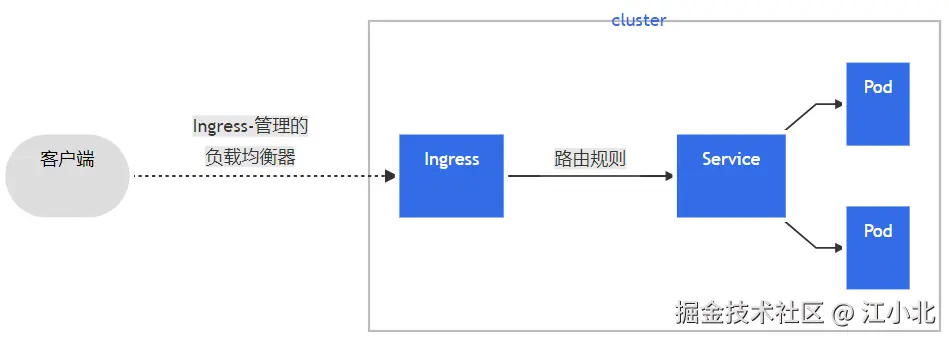 在外部负载均衡器(如云提供商的负载均衡器)上配置一个 IP 地址,将流量转发到 NodePort 或 ClusterIP。