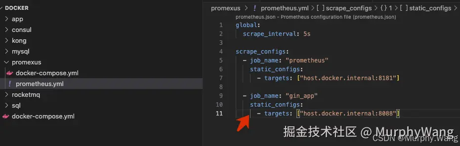 我们想给Prometheus新增监听任务新增ginapp项目只需要在原来的配置文件下面新增ginapp相关metric