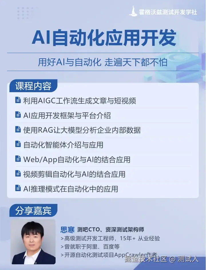 无论您是希望提升个人技能的技术爱好者,还是想通过AI实现副业自由的学生和职场人士,这场公开课都将为您带来前所未有的启发与收获。立即报名,让我们携手并进,在AI与自动化的浪潮中乘风破浪,共创辉煌未来!
