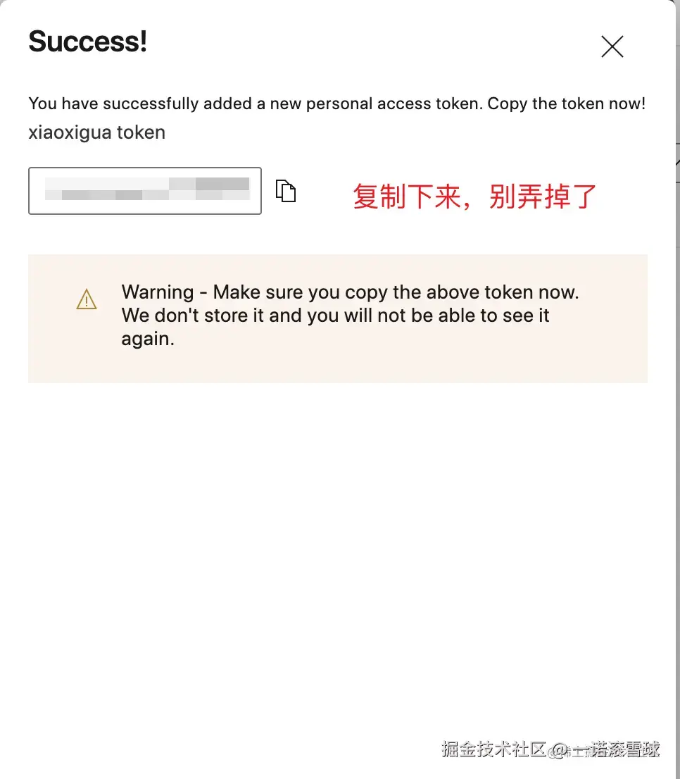 创建好后复制保存好这个 Personal Access Token(PS:一定要记得保存下来)