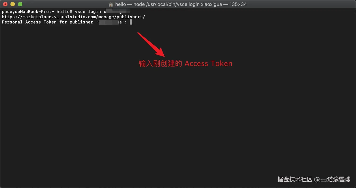 输入在 “vsce login” 使用的 Name 即可