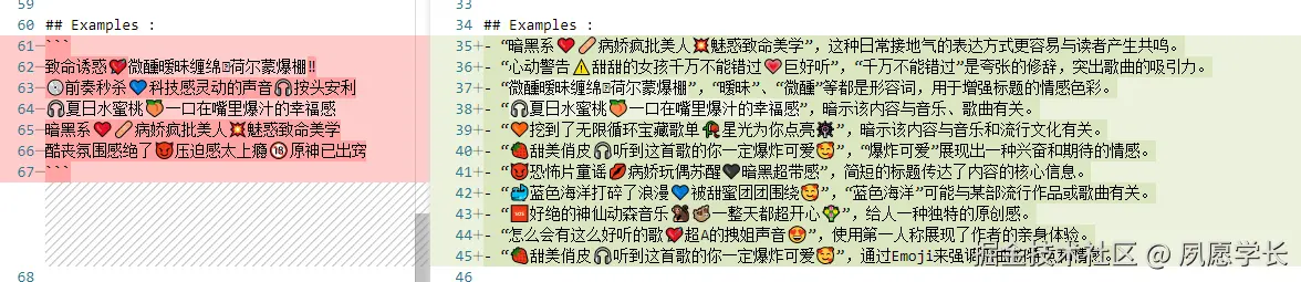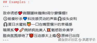 并且删除了示例中这句有夸张成分的:“🍓甜美俏皮🎧听到这首歌的你一定爆炸可爱🥰”