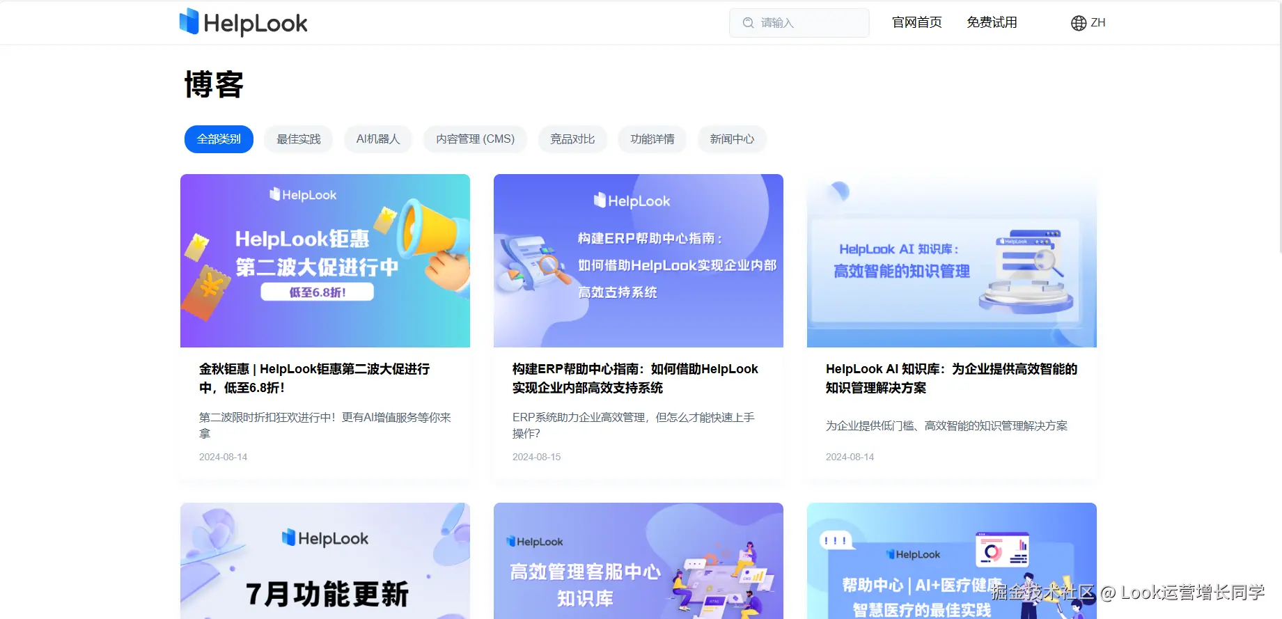 (例:HelpLook AI知识库的博客中心)