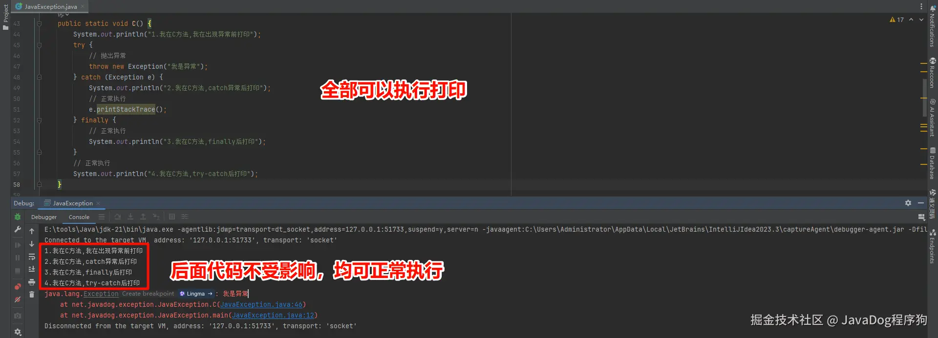 就像本狗问了关于异常之后代码执行情况,基本大回答的都不满意