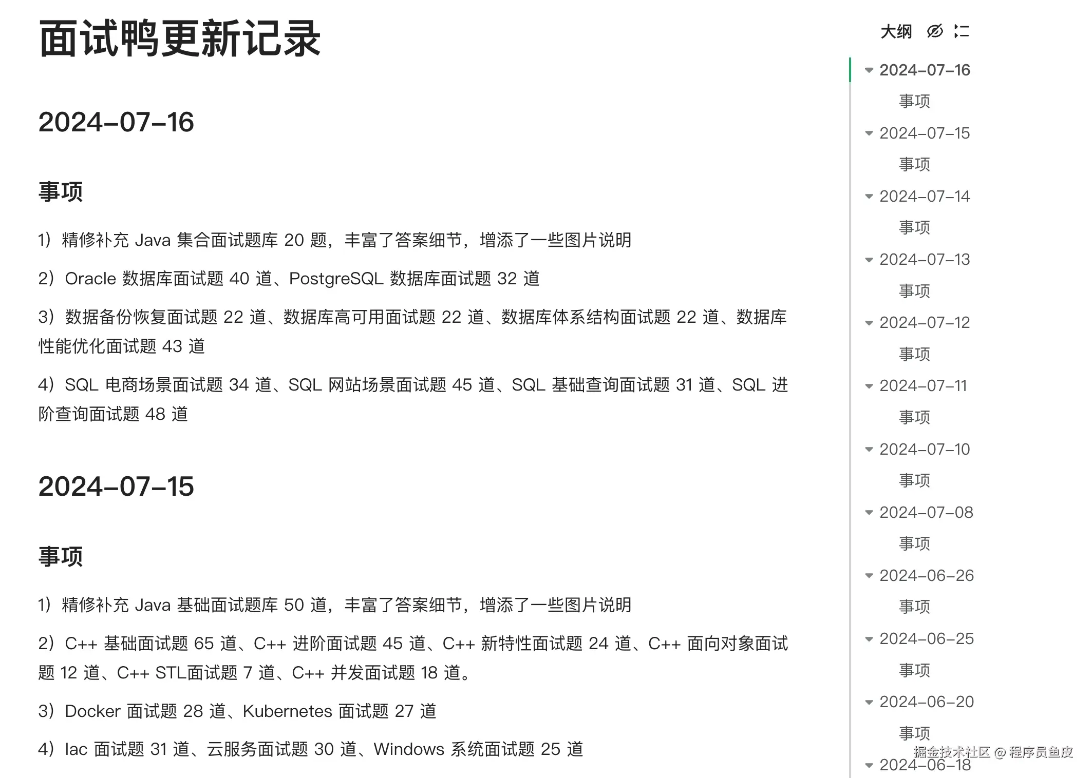- 更多扩展:SQL 编写、系统设计、线上问题排查、场景题、实战项目题库