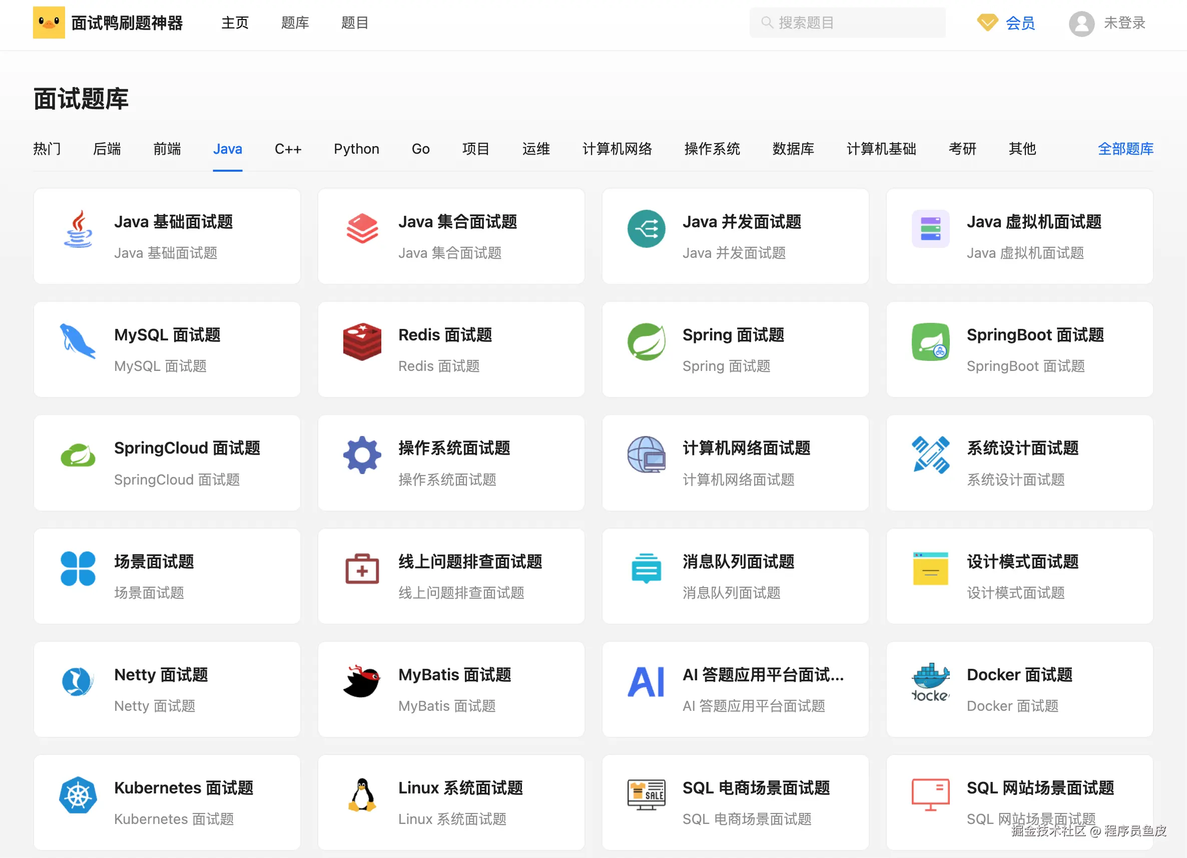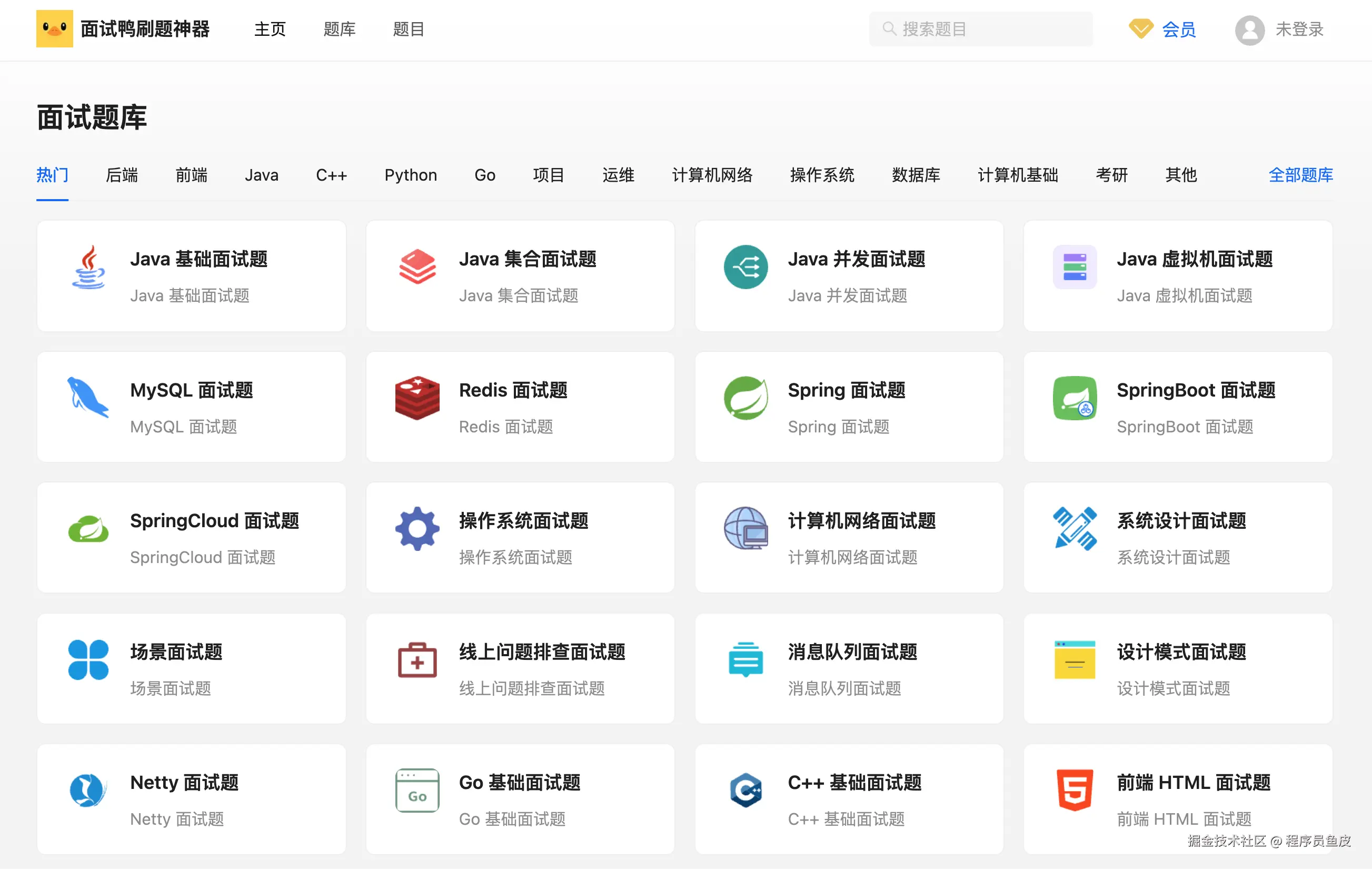 面试鸭涵盖了 几乎所有主流编程方向 的面试题,Java 后端/ C++ / Python / Go / 前端 / 运维 / 计算机基础 / 408 考研,近百个 题库、几千个 高频面试题,能够应对面试官的多方位拷打。