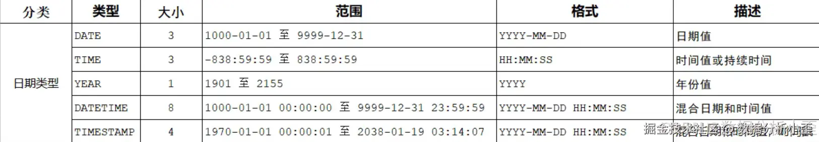 常用 DATE TIME YEAR,注意区分时间范围