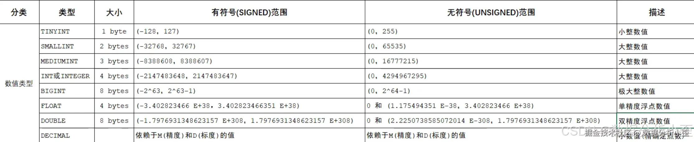 解释:decimal M-> 整个数字的宽度 D->小数点后几位