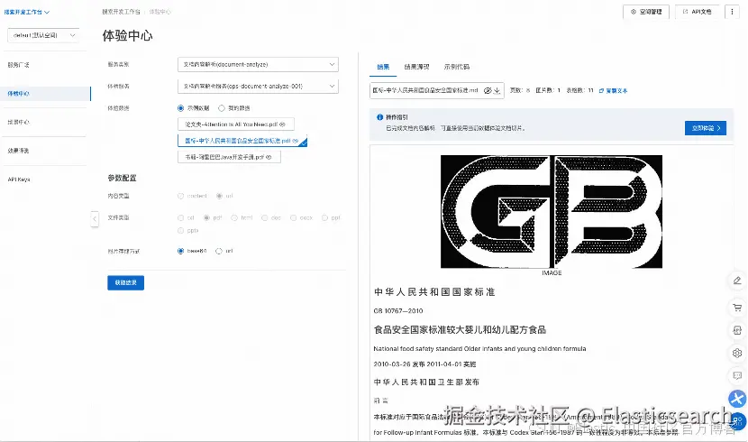 首先看下文档解析服务。使用这里的示例数据,原始的文档中包括较多的表格数据,这里可以将 pdf 中的表格、图片、文本信息都解析提取出来。