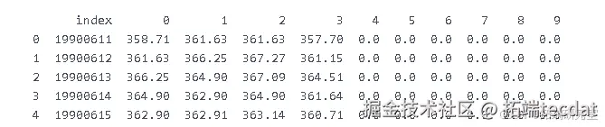 此部分代码实现了从 CSV 文件中读取金融数据,并通过打印数据头部和形状,初步了解数据的结构和规模。