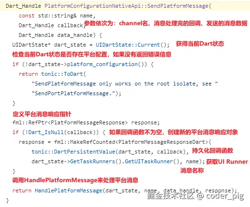 又搜了下 SendPlatformMessage,在 lib/ui/window/platform_configuration.cc 发现了它的具体实现:
