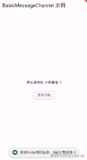 - BasicMessageChannel:传递 字符串或二进制信息,适合 双向通信、快速连续传递简单数据。