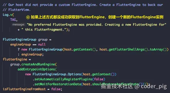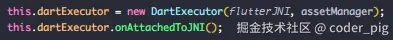 em... 就是为 FlutterActivityAndFragmentDelegate 设置一个 FlutterEngine 实例,然后是 dartExecutor,它在 FlutterEngine 的构造方法中进行了初始化: