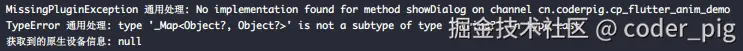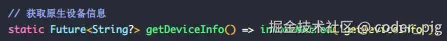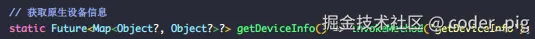 😆 根据错误提示,把 getDeviceInfo() 的泛型改成 Map<Object?, Object?>? 就能获取到正确的结果啦:
