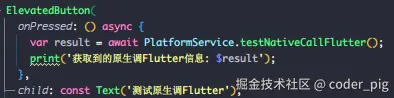 😄 同理,也不用担心快速触发相同的MethodCall会不会出现结果不匹配的问题 (毕竟传服不同闭包),唯一要担心的可能是:Dart 中使用 await 关键字会 等待异步任务执行完毕 后才继续往下执行,这种写法,没有返回,代码就不会一直往下走。如果对异步结果不关心,就不要用await,当然,也可以使用 then() 、whenComplete() 来避免堵塞后续代码。