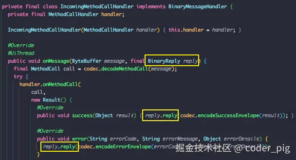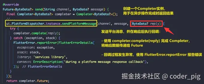 溯源后,可以发现,这个闭包其实就是在 _DefaultBinaryMessenger#send() 中设置的 回调:
